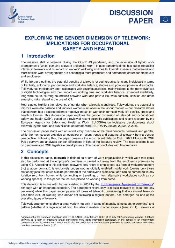 Este documento de reflexión explora la dimensión de género del teletrabajo y la seguridad y la salud en el trabajo (SST) y examina la evolución de la legislación al respecto.