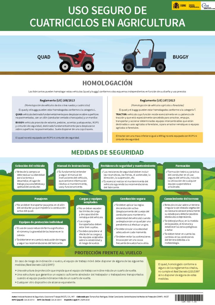 Este cartel informa acerca de la reglamentación de homologación aplicable a los cuatriciclos (quad y buggy) y de las medidas de seguridad recomendadas durante su uso.