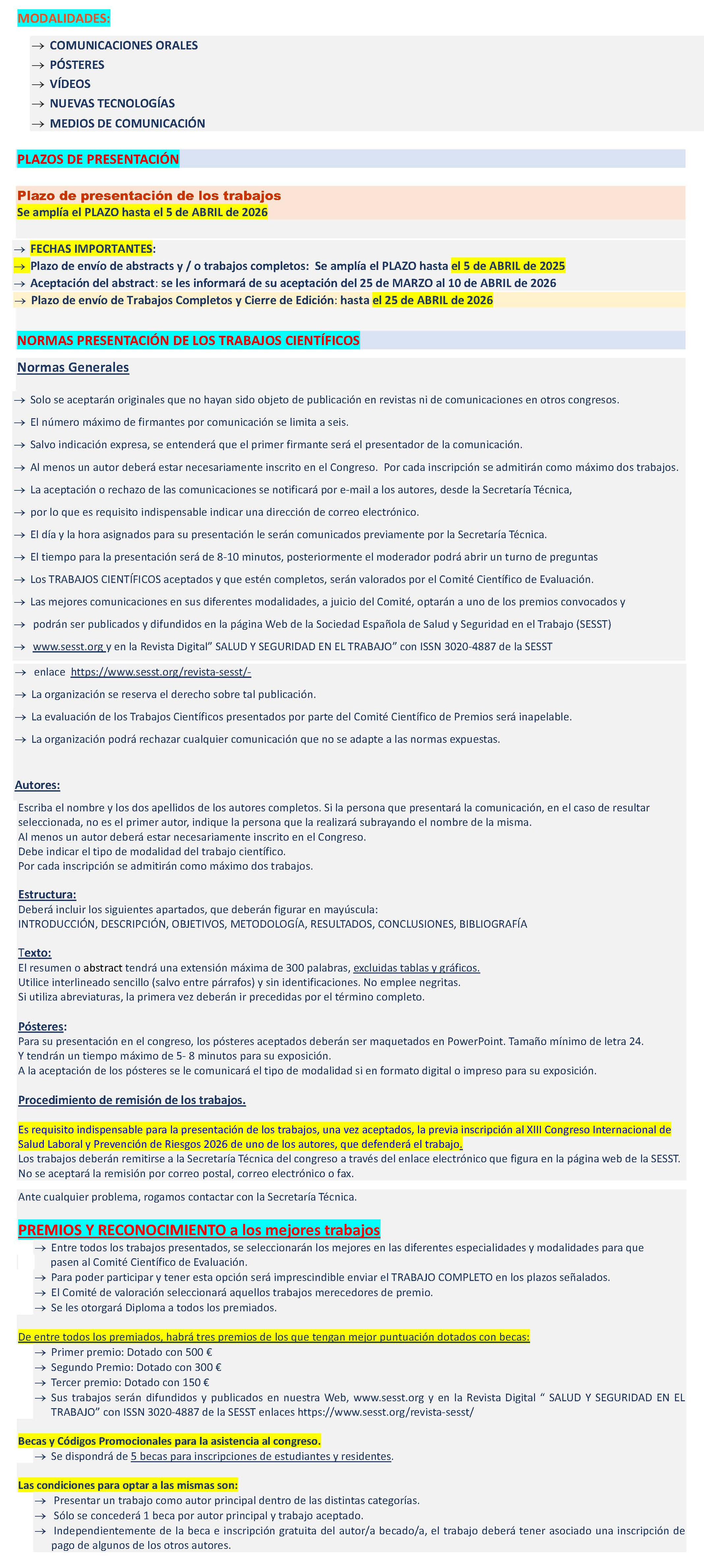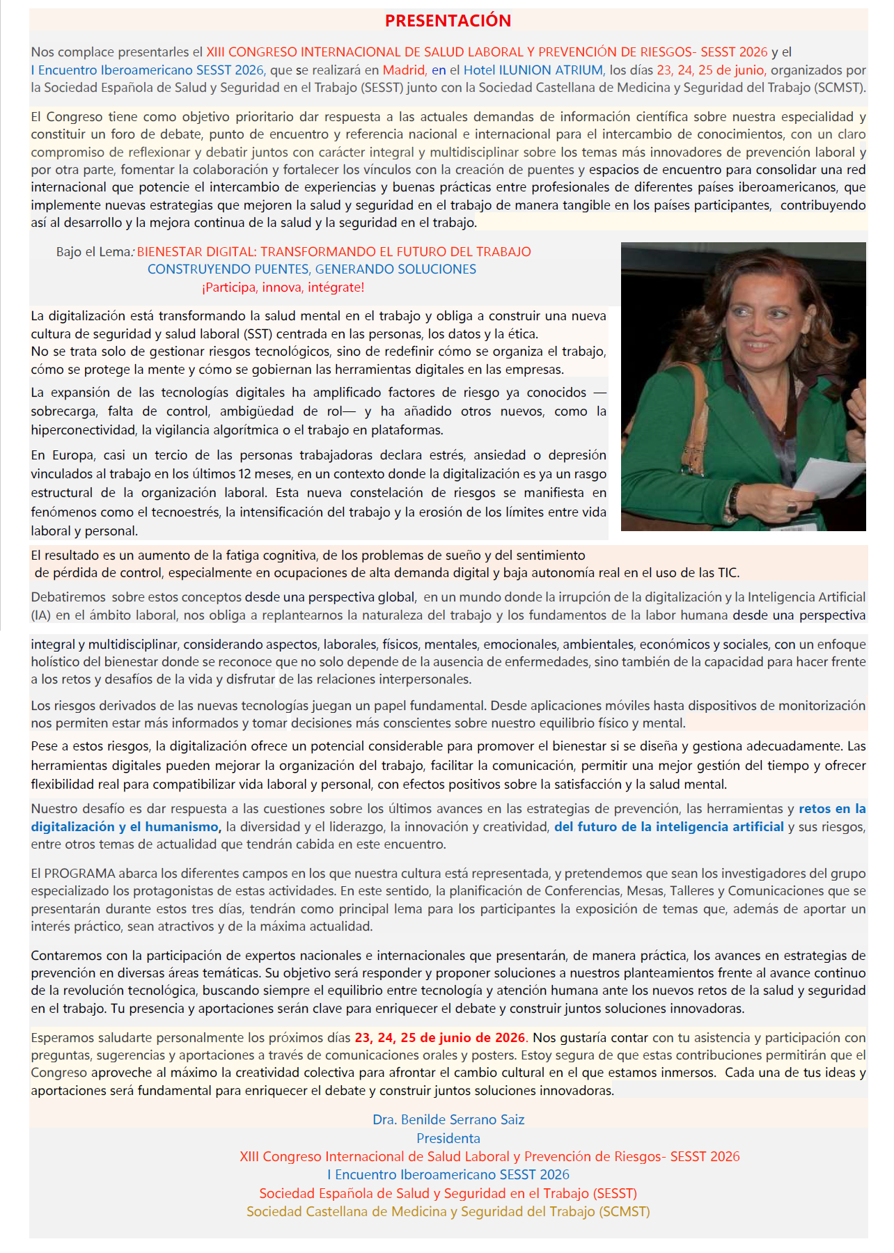 Para información, preguntas y consultas relacionadas con el congreso pueden dirigirse al siguiente correo electrónico: secretariacongreso2026@sesst.org