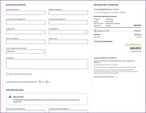 1.- Acceda al siguiente enlace para su realización: https://www.ilunionhotels.com/hoteles/ilunion-atrium?partner=5989&sel=sel:nf-gmb:nm-organic:kwp-:nc-:fe-:fm-:mp-:id-5989