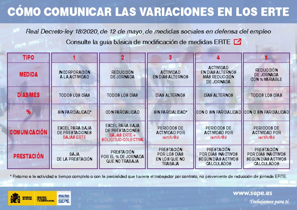 Corrección al punto 2.2. de la Guía Básica de modificación de ERTEs elaborada por el SEPE tras la publicación del Real Decreto-ley 18/2020, de 12 de mayo, de medidas sociales en defensa del empleo, quedando como sigue: