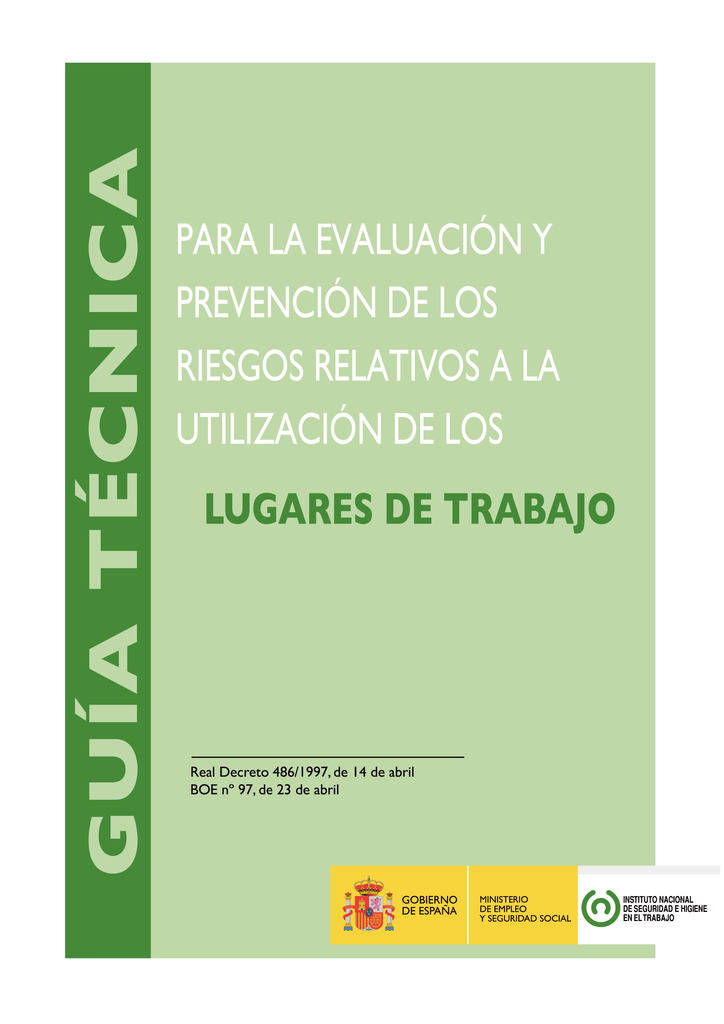 El Real Decreto 486/1997, de 14 de abril, por el que se establecen las disposiciones mínimas de seguridad y salud en los lugares de trabajo, encomienda de manera específica, en su disposición final primera, al Instituto Nacional de Seguridad e Higiene en el Trabajo, la elaboración y el mantenimiento actualizado de una Guía Técnica de carácter no vinculante para la evaluación y prevención de los riesgos relativos a la utilización de los lugares de trabajo.