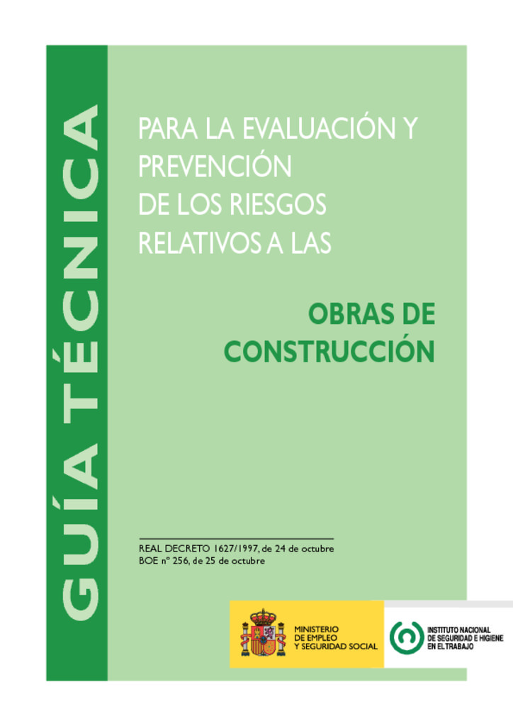 La disposición final primera del Real Decreto 1627/1997, de 24 de octubre, por el que se establecen las disposiciones mínimas de seguridad y salud en las obras de construcción (transposición de la Directiva 92/57/CE) insta al Instituto Nacional de Seguridad e Higiene en el Trabajo a la elaboración y actualización de una Guía técnica no vinculante para facilitar la aplicación del real decreto.