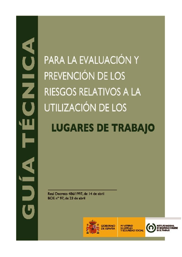 La presente guía técnica proporciona criterios y recomendaciones que pueden facilitar a los empresarios y a los responsables de prevención la interpretación y aplicación del RD 486/1997 de 14 de abril, sobre disposiciones mínimas de seguridad y salud en los lugares de trabajo.