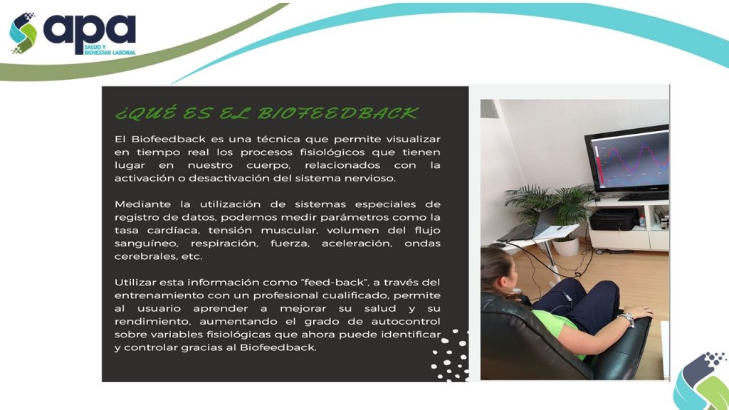 El Biofeedback es una técnica que permite visualizar en tiempo real los procesos fisiológicos que tienen lugar en nuestro cuerpo, relacionados con la activación o desactivación del sistema nervioso.