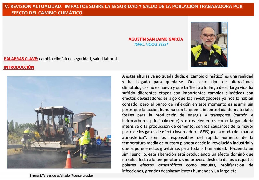 En el número 2 de la revista de la Sociedad Española de Salud y Seguridad en el Trabajo, Agustín San Jaime García nos ofrece un análisis crucial sobre los impactos del cambio climático en la salud y seguridad de los trabajadores. El artículo, titulado «Impactos sobre la seguridad y salud de la población trabajadora por efecto del cambio climático», aborda cómo las alteraciones climáticas, lejos de ser un problema del futuro, ya están afectando a múltiples sectores laborales, especialmente aquellos expuestos a tareas al aire libre.
