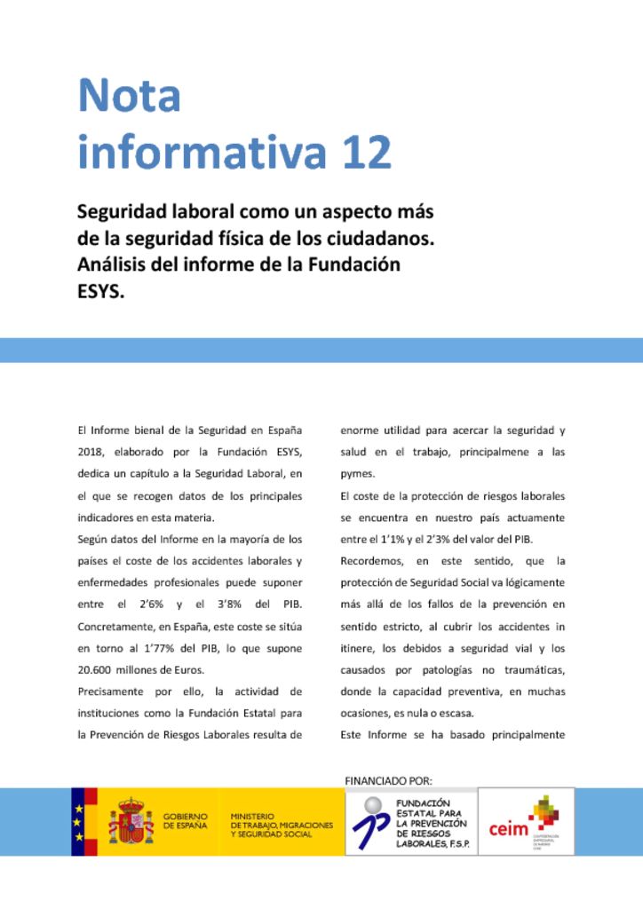 Informe Publicado por la Fundación ESYS – Seguridad y Salud Laboral2019-12-262019-12-23https://www.sesst.org/wp-content/uploads/2018/06/logo-sesst.pngSOCIEDAD ESPAÑOLA DE SALUD Y SEGURIDAD EN EL TRABAJOhttps://www.sesst.org/wp-content/uploads/2019/12/page-document1-1575973025-pdf.jpg200px200px