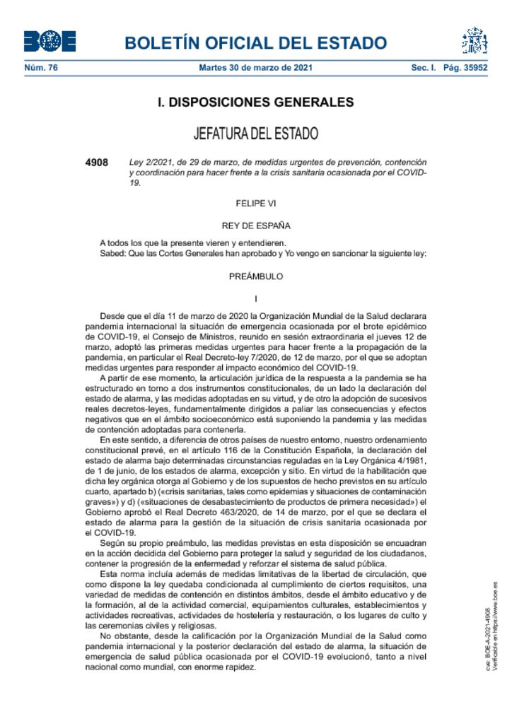 El capítulo I, artículos 1 a 5, recoge las disposiciones generales, esto es, el objeto y el ámbito de aplicación del Real Decreto-ley, los órganos competentes, así como las medidas que se deben adoptar para evitar la generación de riesgos de propagación de la enfermedad COVID-19. Asimismo, se prevé la adopción de planes y estrategias de actuación para afrontar emergencias sanitarias, mediante actuaciones coordinadas en salud pública, para el desarrollo de las distintas actividades que se contemplan en los capítulos siguientes.