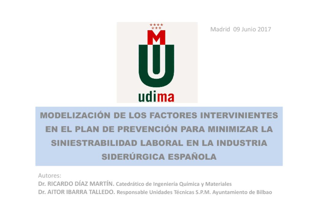 MODELIZACIÓN DE LOS FACTORES INTERVINIENTES EN EL PLAN DE PREVENCIÓN PARA MINIMIZAR LA SINIESTRABILIDAD LABORAL EN LA INDUSTRIA SIDERÚRGICA ESPAÑOLA2017-08-082019-11-12https://www.sesst.org/wp-content/uploads/2018/06/logo-sesst.pngSOCIEDAD ESPAÑOLA DE SALUD Y SEGURIDAD EN EL TRABAJOhttps://www.sesst.org/wp-content/uploads/2017/07/17-Ricardo-Diaz-y-Aitor-Ibarra-V-Congreso-SCMST-2017-2-pdf.jpg200px200px