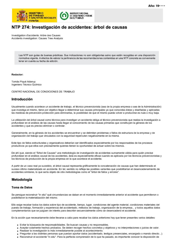 NTP 274: Investigación de accidentes: árbol de causas2021-08-312021-08-31https://www.sesst.org/wp-content/uploads/2018/06/logo-sesst.pngSOCIEDAD ESPAÑOLA DE SALUD Y SEGURIDAD EN EL TRABAJOhttps://www.sesst.org/wp-content/uploads/2021/08/ntp-274-1-pdf.jpg200px200px